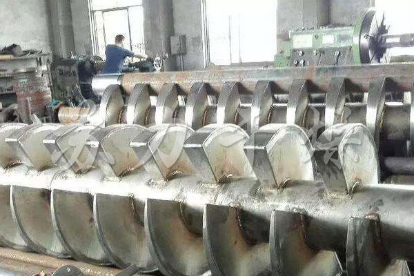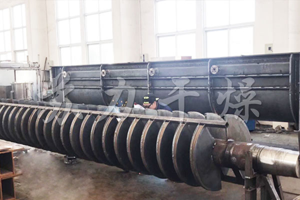 空心軸上密集排列著楔型中空漿葉,熱介質(zhì)經(jīng)空心軸流經(jīng)漿葉。單位有效容積內(nèi)傳熱面積很大,熱介質(zhì)溫度從-40℃到320℃,可以是水蒸汽,也可以是液體型:如熱水、導(dǎo)熱油等。間接傳導(dǎo)加熱,沒有攜帶空氣帶走熱量,熱量均用來加熱物料。熱量損失僅為通過器體保溫層向環(huán)境的散熱。楔型漿葉傳熱面具有自清潔功能。物料顆粒與楔型面的相對運(yùn)動(dòng)產(chǎn)生洗刷作用,能夠洗刷掉楔型面上附著物料,使運(yùn)轉(zhuǎn)中一直保持著清潔的傳熱面。漿葉干燥機(jī)的殼體為Ω型,殼體內(nèi)一般安排二到四根空心攪拌軸。殼體有密封端蓋與上蓋,防止物料粉塵外泄而充分發(fā)揮作用。