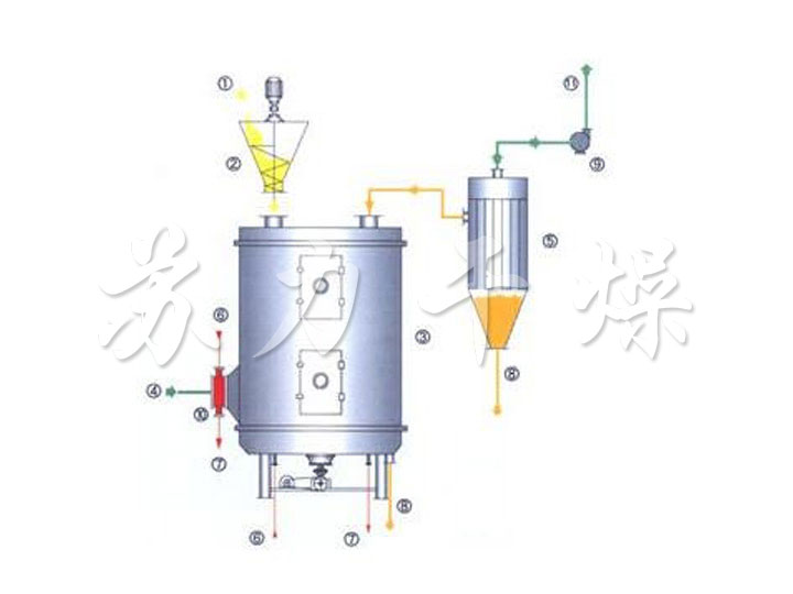 ◎停止進料后,傳送物料垢耙葉能很快地排空干燥器內(nèi)的物料。