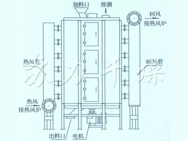 ◎常壓型:由于設備內(nèi)氣流速度低,而且設備內(nèi)濕度分布上高下低,粉塵很難浮到設備頂部,所以頂部排濕口排出的尾氣中幾乎不含有粉塵。
